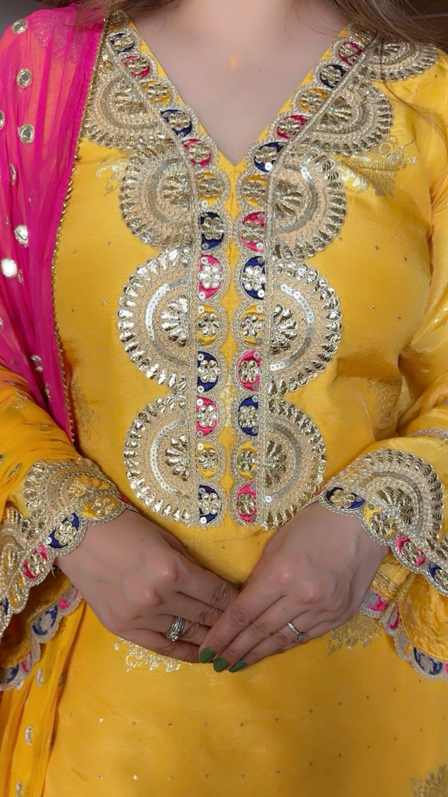 ✨ Short kurti with bell sleeves & gotta patti detailing